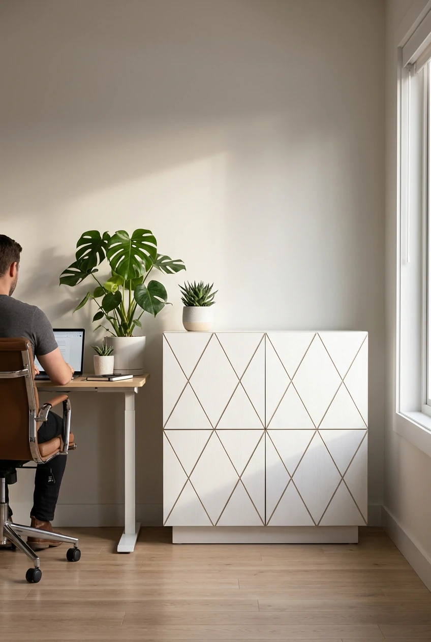 Riiulite sisekõrgus on 33cm, seega sobilik ka kontorisse, et kaustasid mahutada. Valmistatud kvaliteetset kasevineerist, õlivahatatud või valge HPL vineeriga või Forescoloriga, push2open-uksehinged, mis avanevad ja sulguvad vajutusega. Ustel on muster sisse graveeritud. Uste taga riiul laiusega 67 cm. All 8 cm kõrgune sokkel, mis sobitub erinevate põrandaliistudega.
